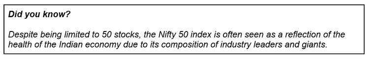 The Nifty 50 Index is a well-recognised benchmark for the Indian stock market, comprising 50 of the largest and most actively traded stocks on the National Stock Exchange (NSE). These companies represent key sectors of the economy and are selected based on their liquidity and market capitalisation.